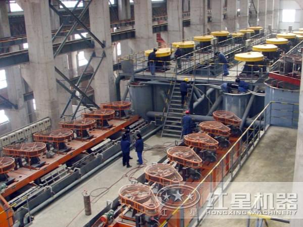 顎式破碎機(jī)進(jìn)行初步的破碎、球磨機(jī)進(jìn)行研磨加工、分級(jí)機(jī)進(jìn)行分選、磁選機(jī)分離其中的磁性物質(zhì)、浮選機(jī)配合藥劑進(jìn)行浮選、濃縮機(jī)濃縮,烘干機(jī)烘干等