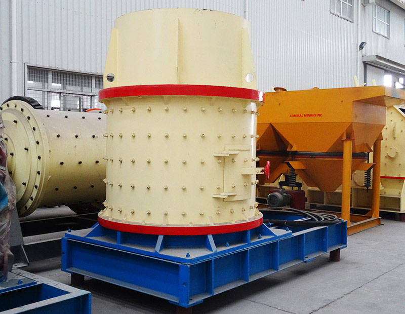 塊狀礦石由進料斗落入上破碎腔內(nèi)上甩料盤上,借助甩料盤的離心力將物料拋向筒體的內(nèi)壁,與安裝在內(nèi)壁上的反擊板猛烈碰撞,同時物料互相撞擊,使之破碎或產(chǎn)生大量發(fā)絲裂紋,接著物料進入錐形轉(zhuǎn)子腔后,在錐形空間呈螺旋狀下落,經(jīng)沖壓、擠壓,使已有裂紋的礦石進一步被破碎。由于錐形轉(zhuǎn)子與襯板間的斜度,促使較小的物料向下遷移,達到由大到小自動實現(xiàn)分級破碎。物料在錐形轉(zhuǎn)子腔內(nèi)受錘頭的打擊,高速運行塊料再次與反擊板碰撞、物料流相互碰撞使物料經(jīng)打擊、撞擊、剪切、擠壓面粉碎,從而提高破碎效率。