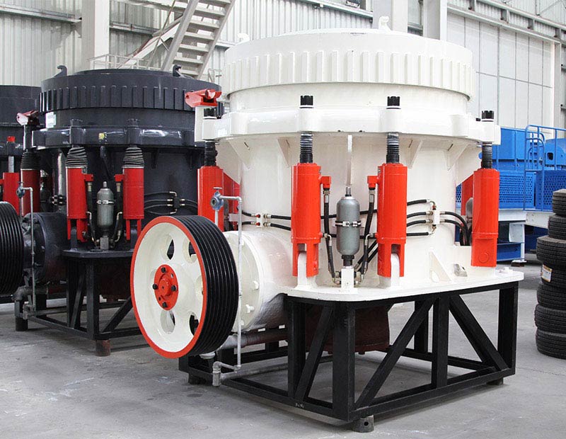 液壓圓錐破碎機(jī)主要由傳動(dòng)軸、偏心套、球軸承、液壓保險(xiǎn)裝置、調(diào)整環(huán)、皮帶輪、機(jī)架等部件組成。